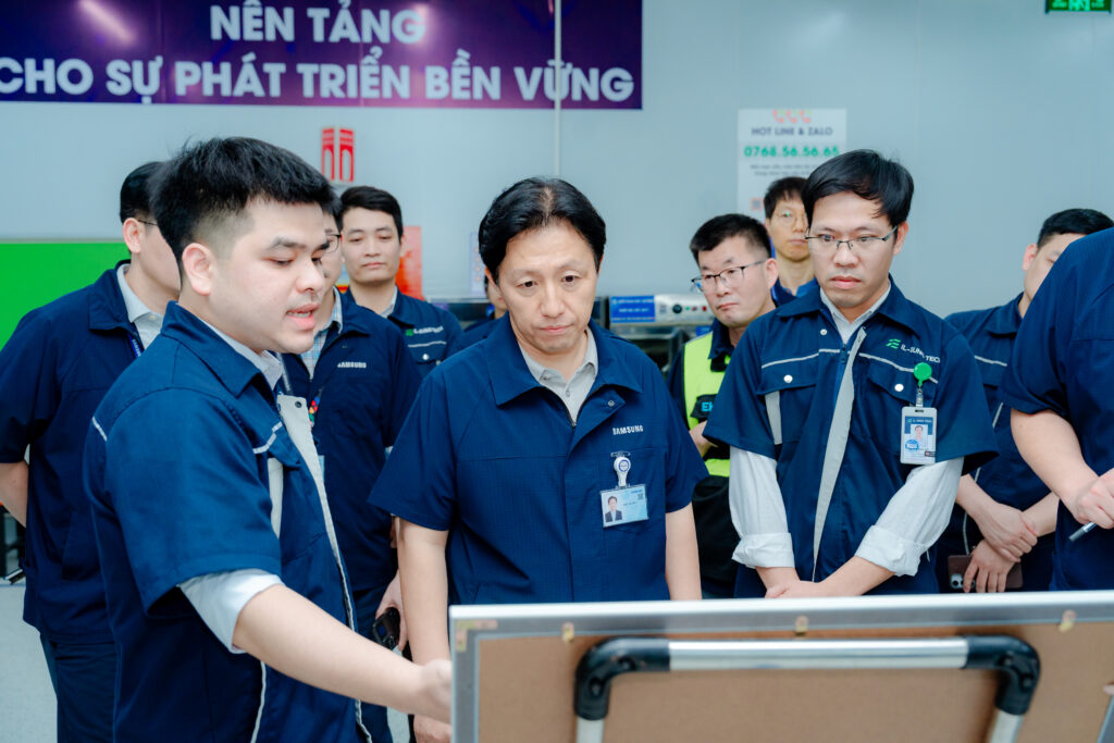 Chuyến thăm diễn ra trong bối cảnh IL-Sung Tech đang đẩy mạnh chiến lược “Đổi mới – Bứt phá” và thực hiện khẩu hiệu “TINH GỌN – HIỆU QUẢ – BỨT PHÁ” năm 2025. Tại buổi làm việc, ông KIM IEESOO đã trực tiếp kiểm tra hiện trường sản xuất, đánh giá quy trình vận hành, công tác quản lý sản xuất cũng như việc duy trì các tiêu chuẩn quản trị theo hướng hiện đại, bài bản, đáp ứng đầy đủ các tiêu chuẩn của Samsung.